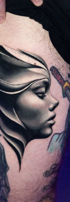My work focuses on black and grey realism — rich in motion, contrast, and depth. I’m drawn to female faces, angels, and saints, brought to life through smooth, detailed shading that defines my signature style.